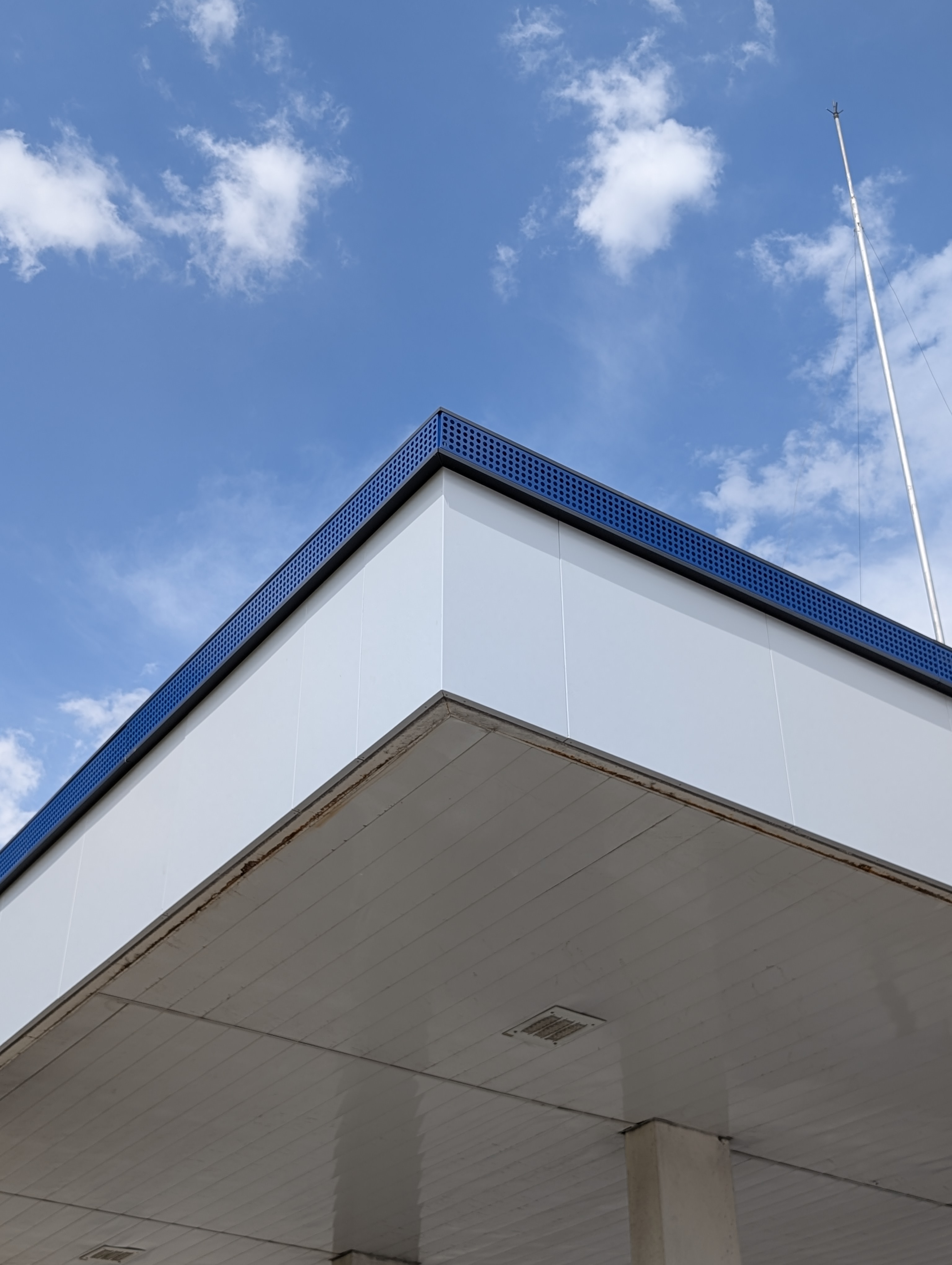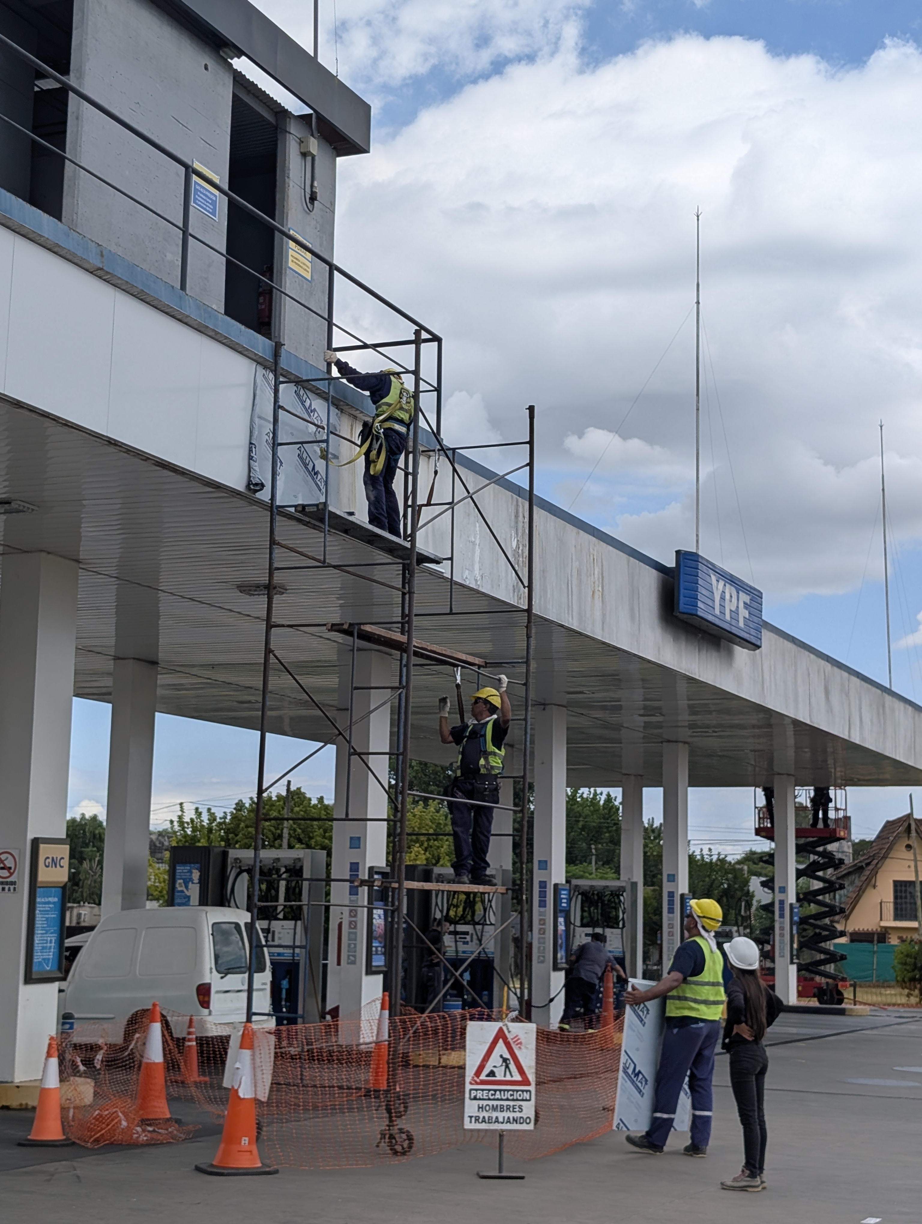 Estación de servicio YPF con diseño comercial integral, marquesina contemporánea y local Full.